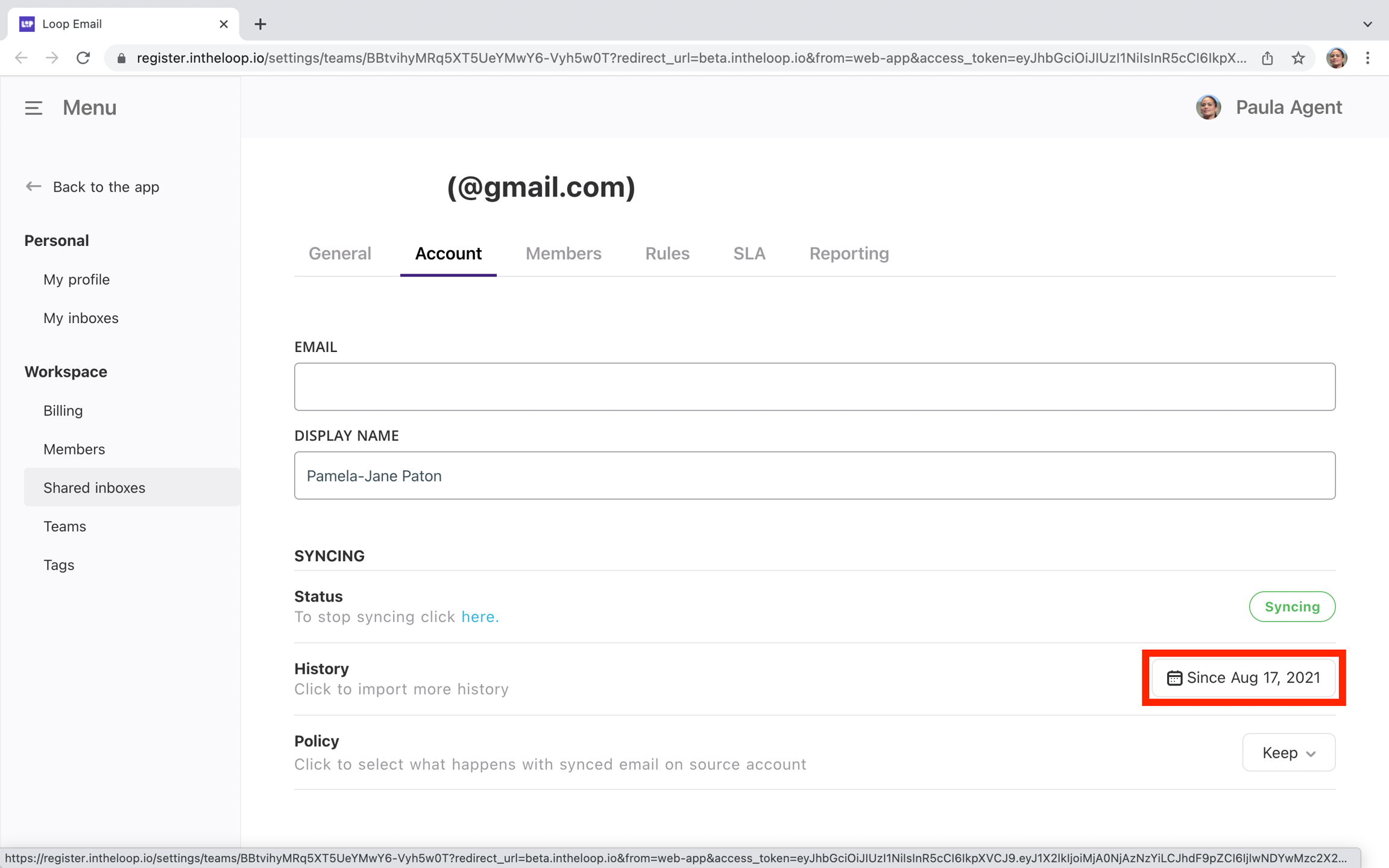 Once your shared inbox is set up, if you are an admin, you can edit the import history.