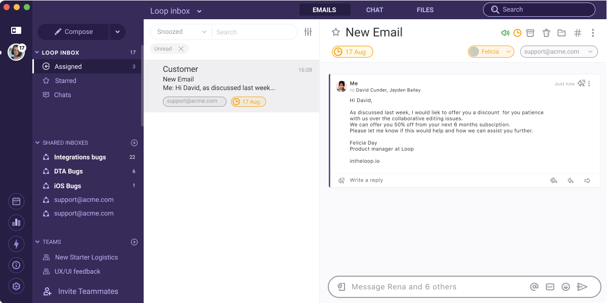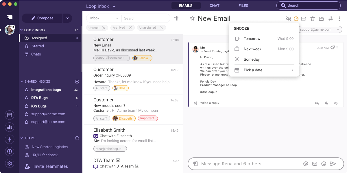 Loop Snooze allows you to “snooze” emails which you can’t action straight away. This removes the email from your inbox and brings it back when you’re ready to deal with it.