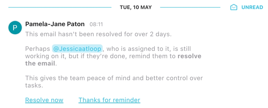 The nudge default acts by marking an email as unread and moving it to the top of your email list. There is a system generated message which will detail which SLA was breached.