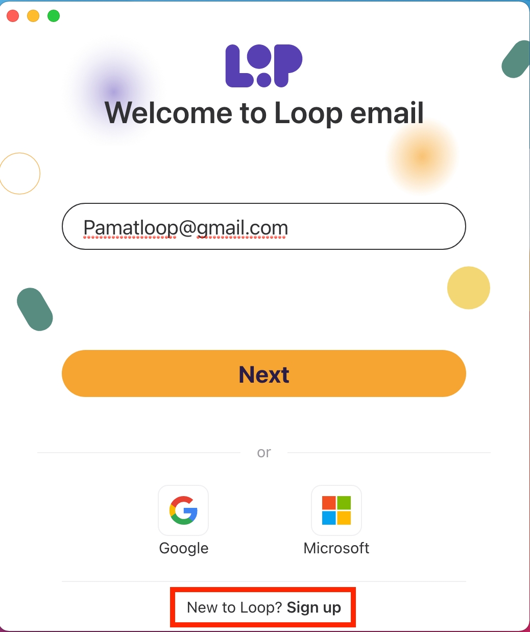You will then be asked to create a password for your Loop account. As a Gmail user, you will be prompted to use single sign on.